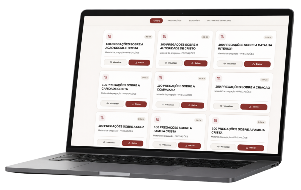 É exatamente isso que o 12 Mil Pregações Prontas te entrega: Clareza para saber o que pregar, estrutura para prender a atenção e profundidade para gerar transformação real